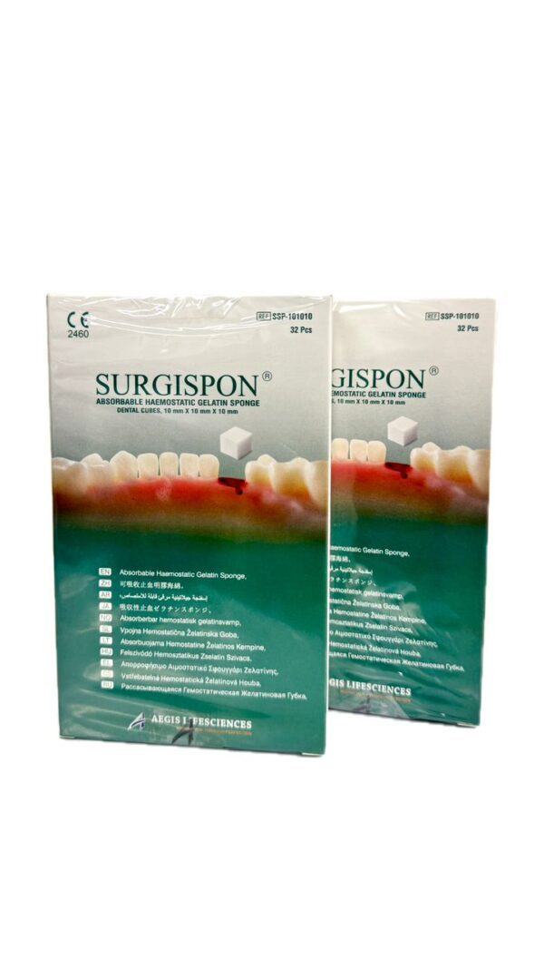 SURGISPON® is a sterile hemostatic absorbable gelatin sponge made from highly purified pharmaceutical grade gelatin (lyophilized hydrolyzed collagen) foam, which gives it a uniform porosity & reacts neutrally. The dried foam is cut, packaged, and sterilised using gamma radiation. SURGISPON® is immediately available for use in the operating theatre and does not require any sterilisation by dry heat or autoclaving. SURGISPON® may be used in combination with antibiotics, thrombin, and chemotherapeutics without reduction of the sponge’s haemostatic effect. Carefully read applicable instructions for use before usage.